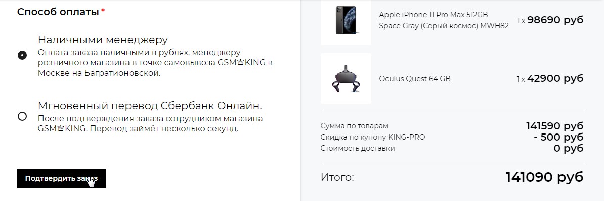 - Скидка 1000₽ на заказ товаров с промокодом KING-MAC