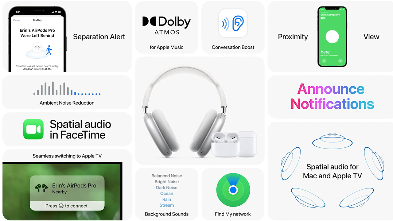 Новые сценарии работы гарнитуры Apple. С обновлением iOS 15 появится фокус на речи собеседника в шумной обстановке при использовании AirPods. Гарнитура сможет издавать звуки даже внутри кейса, что позволит легче находить пропавшие наушники.