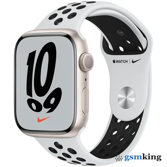 Apple Watch Nike Series 7 GPS 45mm Starlight Aluminum Case with Nike Sport Band Pure Platinum/Black MKNA3RU/A